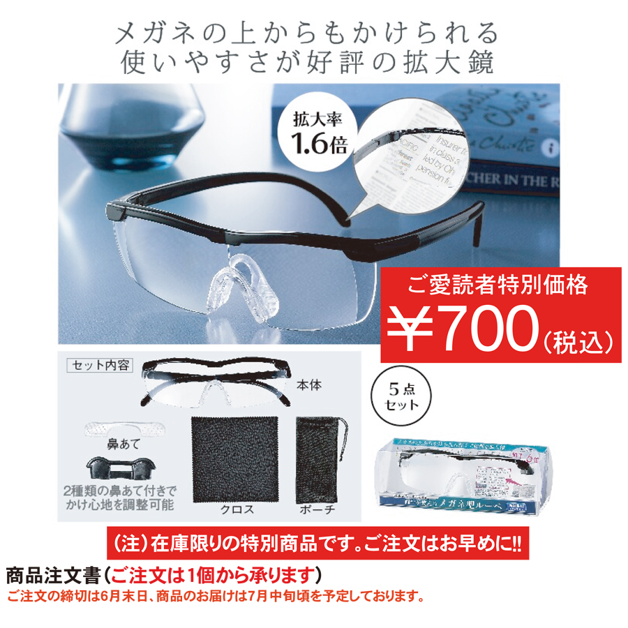 メガネの上からもかけられる、使いやすさが好評の拡大鏡